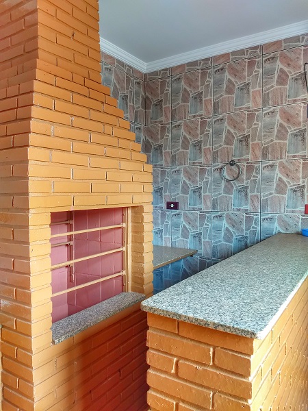 com churrasqueira e banheiro.